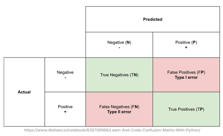 목차 1. 오차 행렬 2. 정확도 3. 정밀도 4. 재현율 (1) 오차 행렬 : 이진 분류에서 성능 지표로 활용되며, 학습된 분류 모델이 예측을 수행하면서 얼마나 헷갈리고 있는지도 함께 보여주는 지표이다.