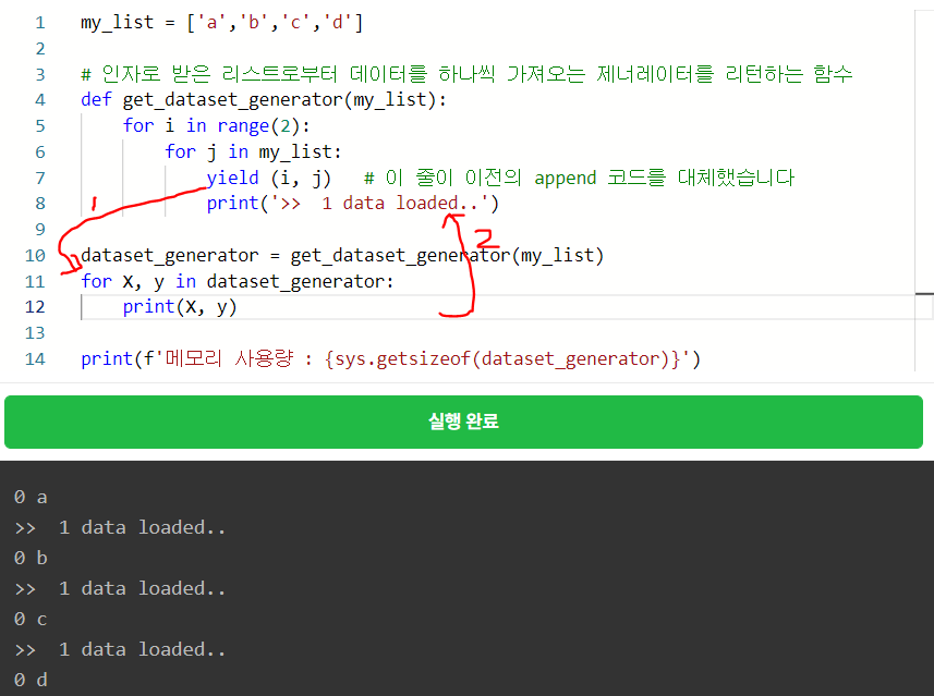 - 데이터가 많을 때 메모리 사용이 효율적이어서 자주 사용하는 파이썬의 기능.
