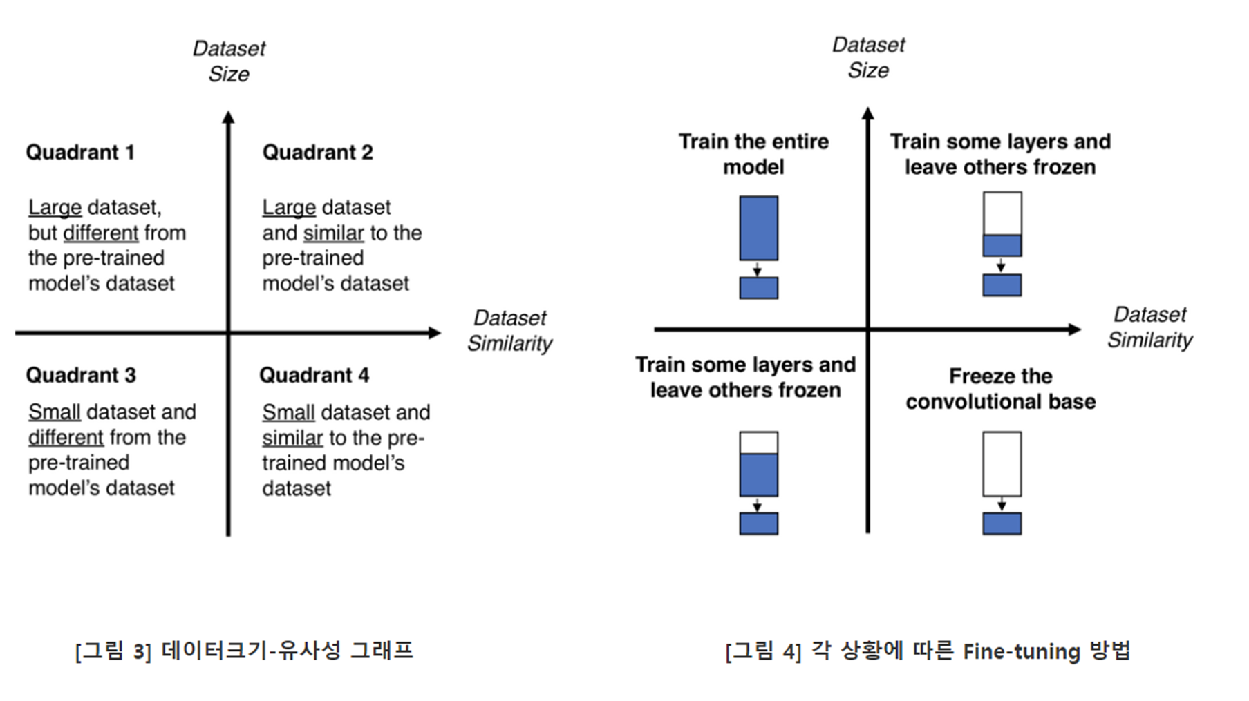 - 1일전 (금) : 마음이 앞서는 하루였다. 이미 열두시가 지나 지금은 토욜이지만 나에게 오늘은 참 길었다. 찾아보다가 내가 지금 하려는 transfer 학습의 범위가 엄청 넓다는 사실과 나의 상황이 최악이라는 것을 알게되었다. 나는 지금 Quadrant 3이다. 가지고 있는 데이터셋도 너무 작고, pretrained dataset과도 너무 다르다. weight를 freeze하라는 것도 어떻게 하는지 모르는데, 그 안의 layer 중에 일부만 freeze 해야한다는 말에 절망했다. 차라리 1440개로 쌩으로 학습한 classifier가 더 빠를 것 같았지만, 찾아볼 수록 그래도 이미 학습되어 있는 model에게 학습효과를 기대해봄이 더 좋다는 말들이 많았다.