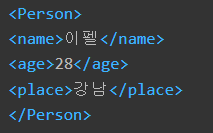 >> <Person><name>이펠</name><age>28</age><place>강남</place></Person> 이렇게 만들어짐