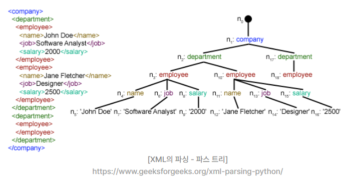 - 구조가 python의 dictionary 와 유사해 xml보다 다루기가 쉬움