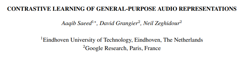 Contrastive Learning of General-Purpose Audio Representations - COLA (2021 .10)