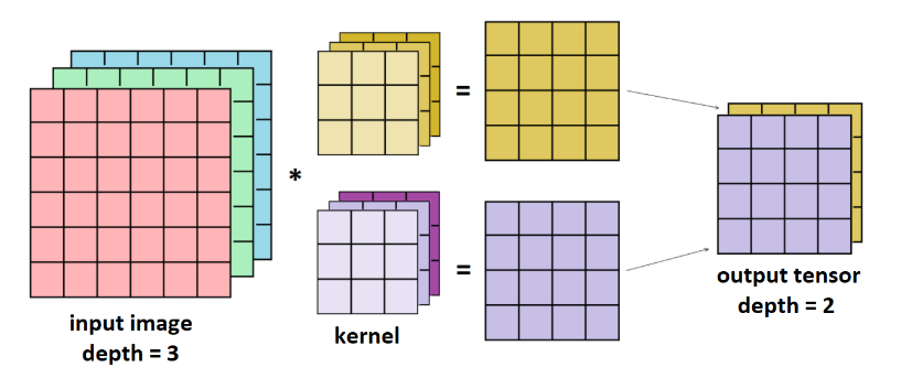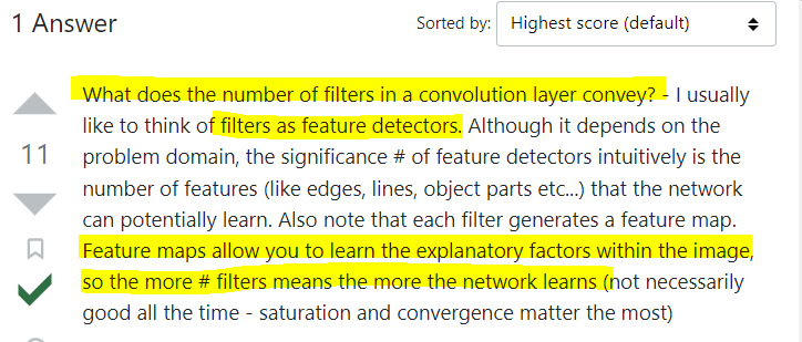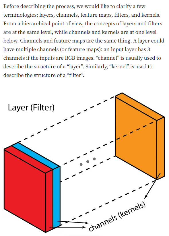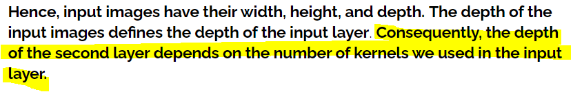 1. input image의 depth (= num of channels = num of feature maps) = filter 의 num of kernels