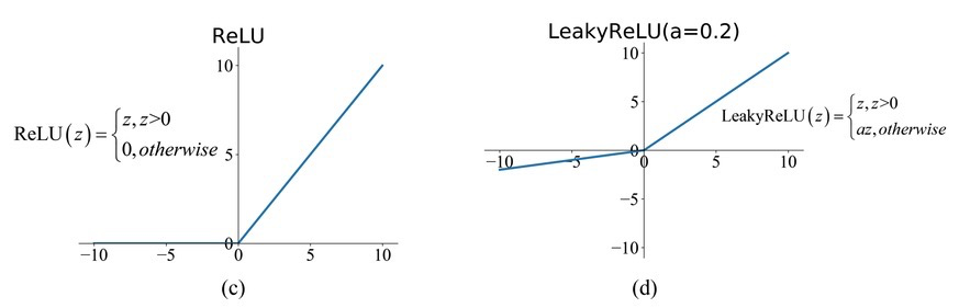 - ReLU: 양끝이 수렴하지 않아 sigmoid나 tanh처럼 기울기가 눌리는 구조적 문제가 없다. 그래서 아주 단순히 입력값 x가 양수면 x값 그대로 출력하고, 음수면 그냥 0으로 출력하여 차단한다. 미분값도 1 아니면 0이다. 또한 활성구간에서는 미분이 1이라 기울기가 보존되고, 비활성구간에서는 미분이 0이라 학습 신호가 차단된다. 이 단순한 스위치 구조 덕분에 깊은 신경망에서도 기울기 소멸 문제가 크게 완화되어 forward, backward 모두 안정적인 학습이 가능해져서 실질적 딥러닝 학습이 시작되었다.