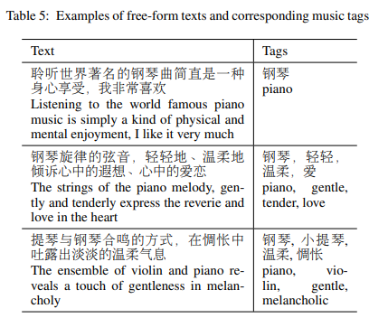 end-to-end text conditioning과 music tag conditioning models 두 개를 훈련시켜서 different formats of input text를 비교할 예정.
