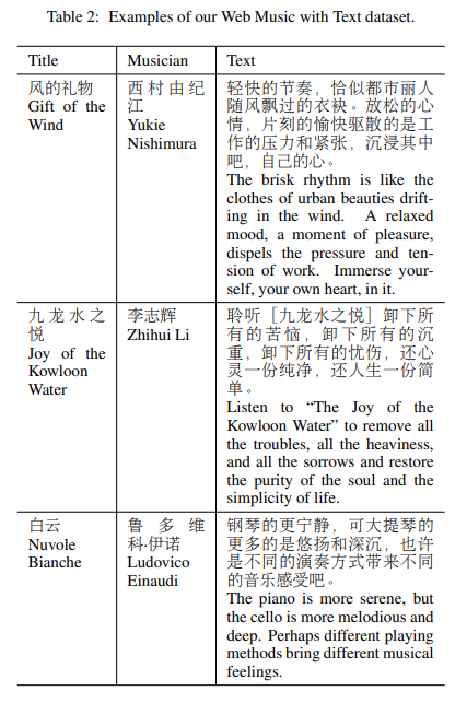 end-to-end text conditioning과 music tag conditioning models 두 개를 훈련시켜서 different formats of input text를 비교할 예정.