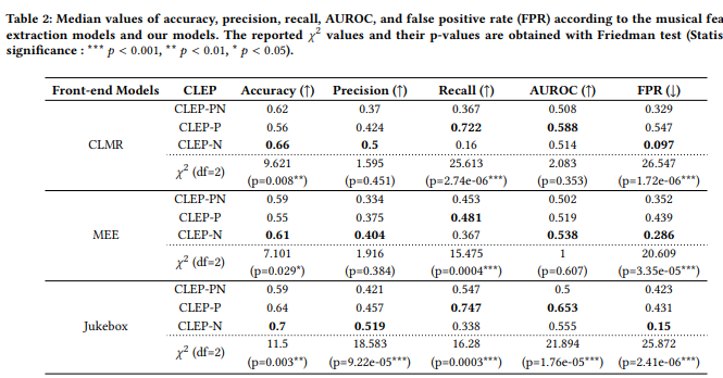 MEE : capture the song’s overall timbre and mood, including its mastering style. CLMR은 음악의 리듬, 멜로디 같은 구성요소를 고려해 특징을 추출, MEE는 추가적으로 음악 톤, 분위기, 마스터링 스타일 등을 고려해서 음악의 특성을 더 정확히 추출. 자료가 많아지고 표현이 풍부해짐.