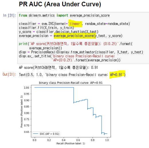- y축 Precision과 x축 Recall의 trade-off를 보여주는 그래프