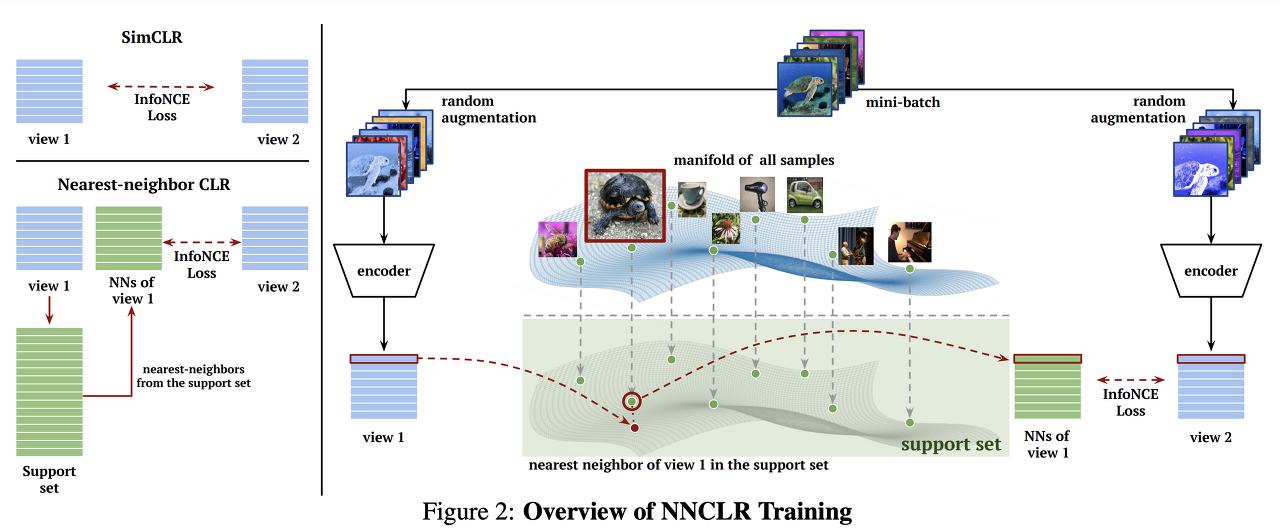 - NNCLR(NearestNeighbor Contrastive Learning of visual Representations) 을 제시함
