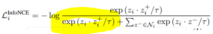 For any given embedded sample zi , we also have another positive embedding z + i (often a random augmentation of the sample), and many negative embeddings z − ∈ Ni .